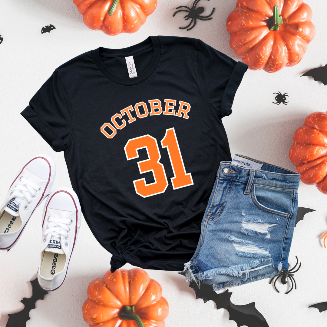 October 31 T-shirt | Bold Varsity Halloween Tee | Autumn Graphic Shirt
