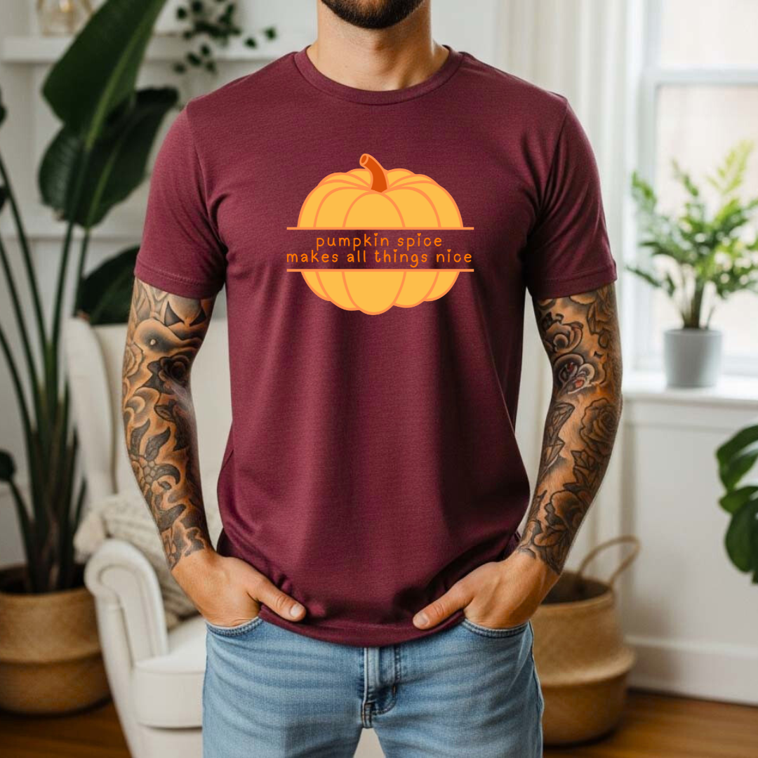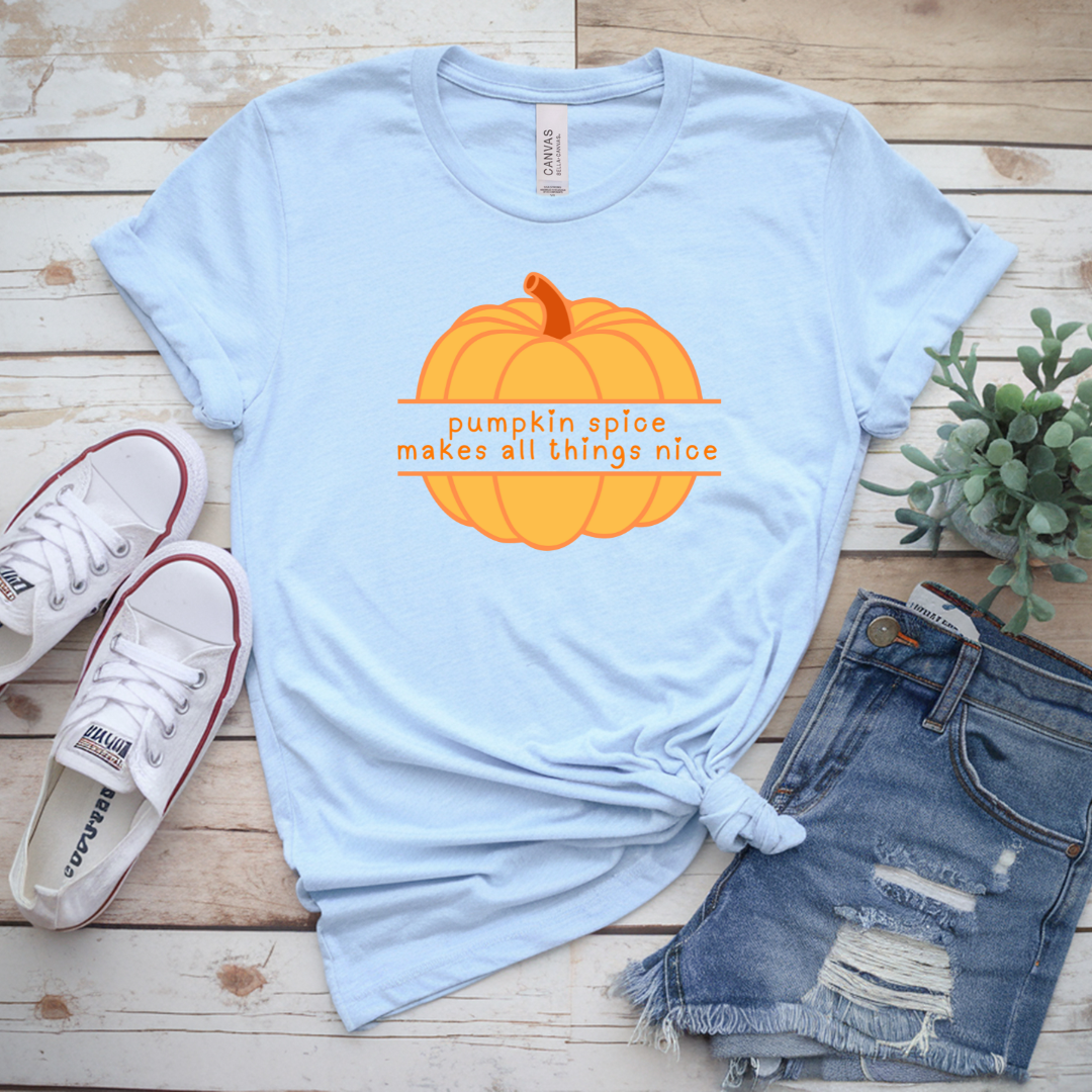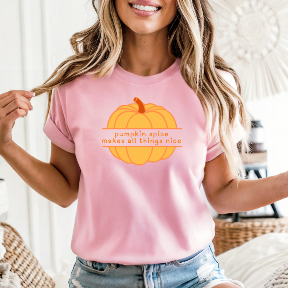 Pumpkin Spice Makes All Things Nice T-Shirt | Cozy Autumn Graphic Tee | Fall Pumpkin Shirt